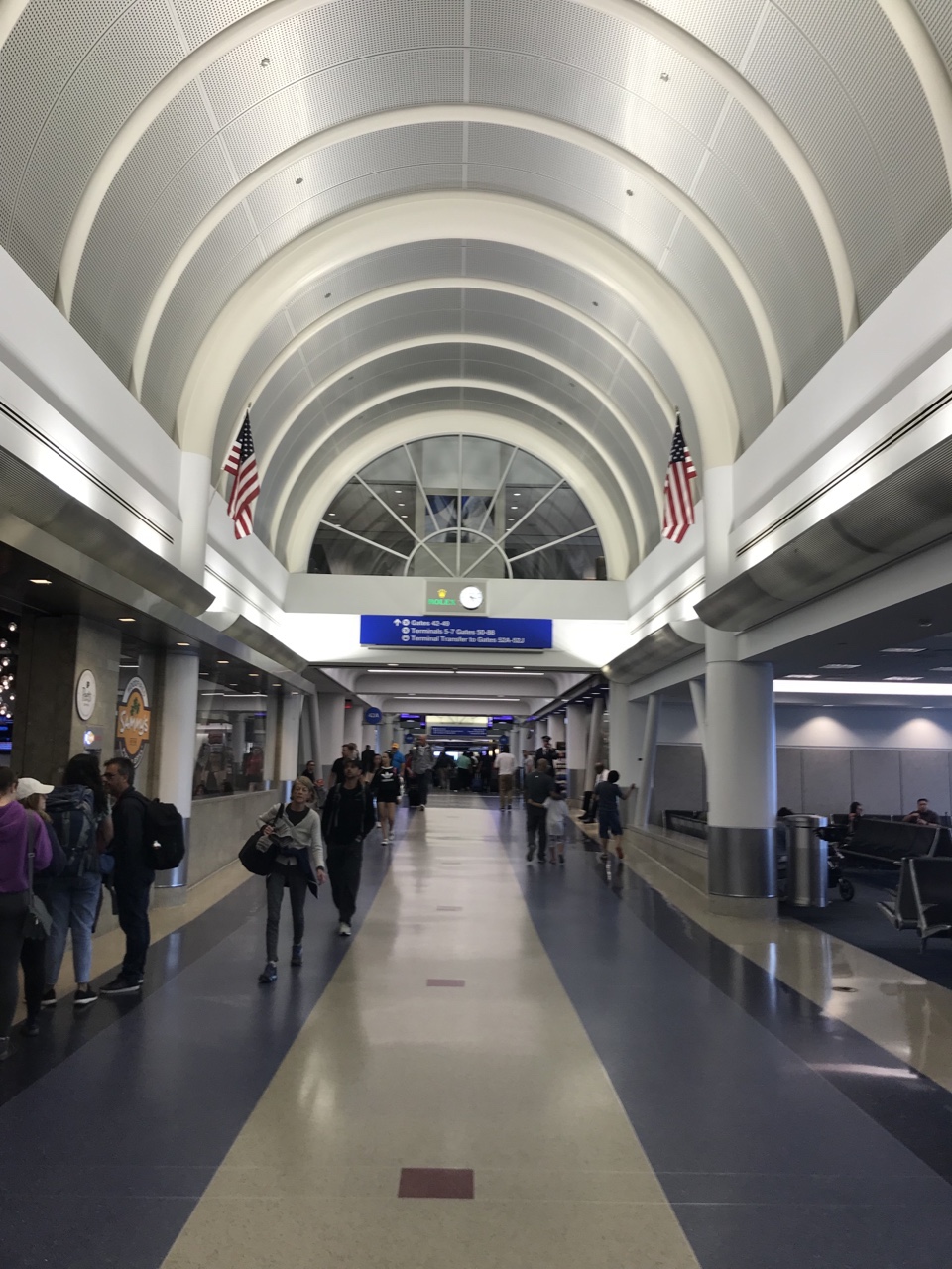 人生初の海外で、飛行機の乗り方も怪しいまま出発したんですが、空港ではかなり順調でチェックイン、セキュリティを通り飛行機に搭乗。そして最初の乗り継ぎ地であるロサンゼルスに到着!